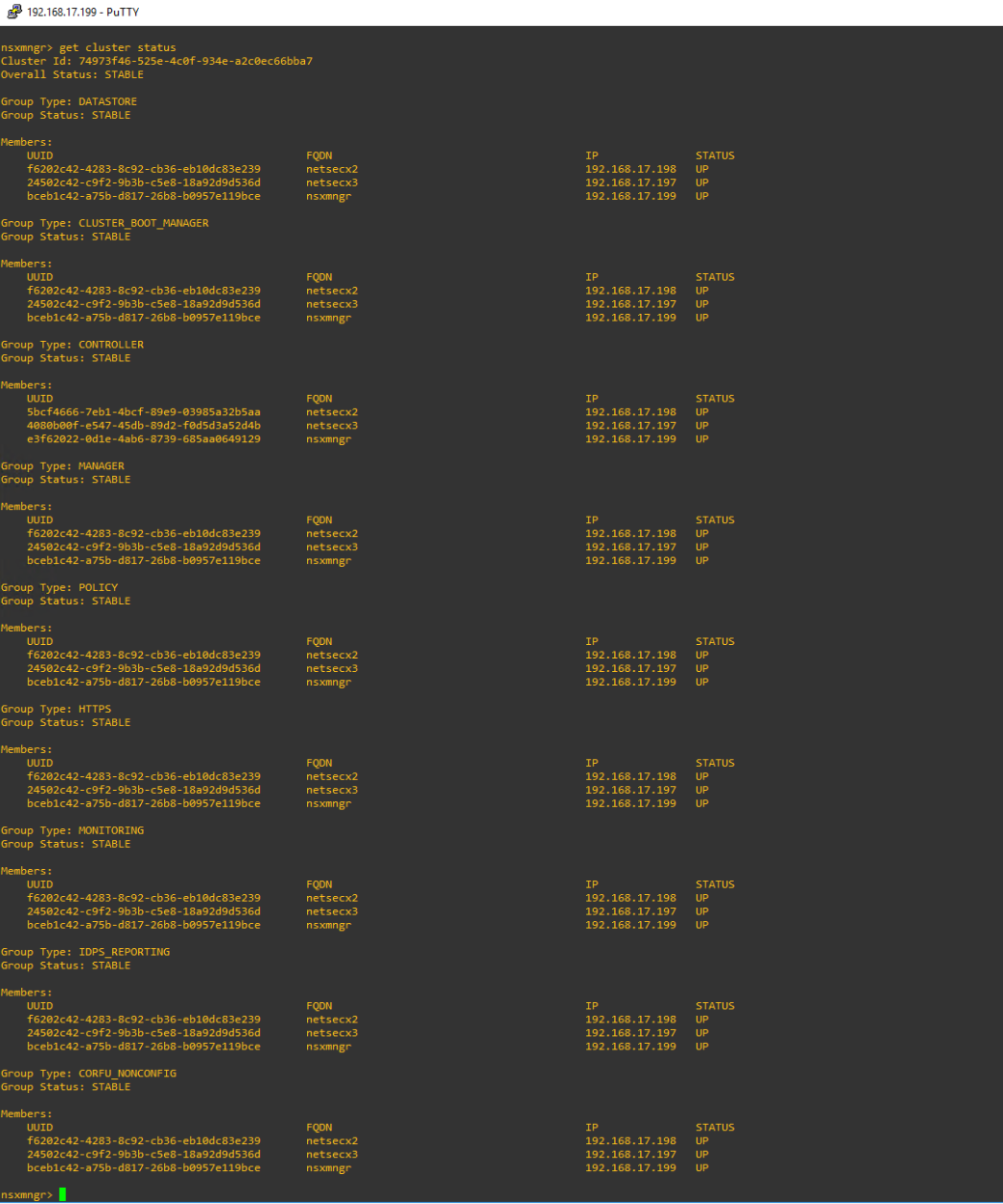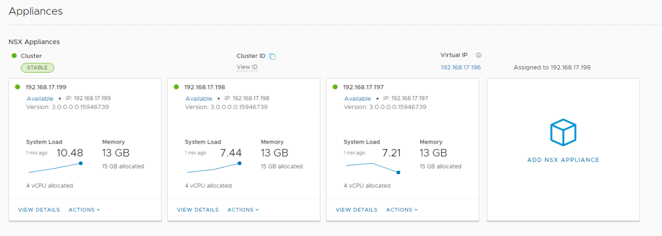 Son olarak işlemler tamamlandığında UI içerisinde System > Appliances altında üç manager’ında UP durumda olduğunu göreceksiniz.
